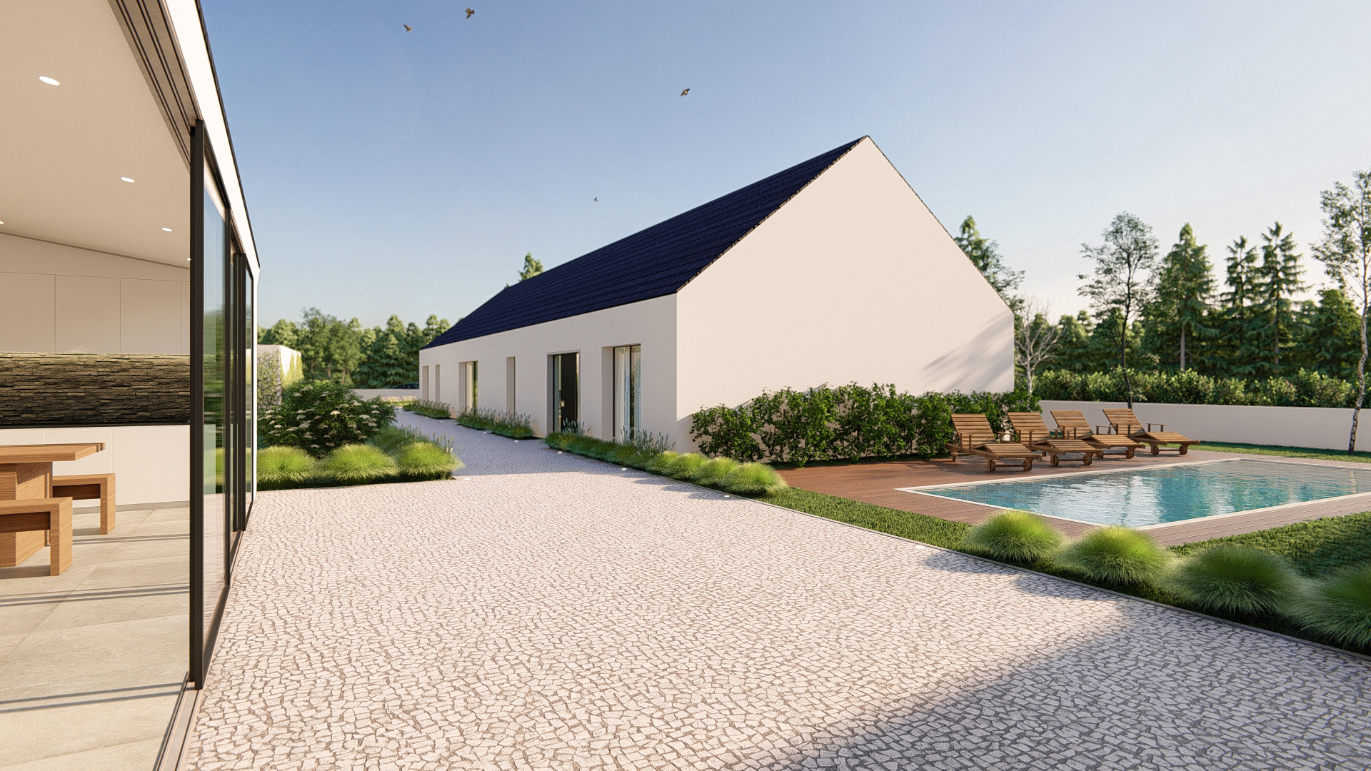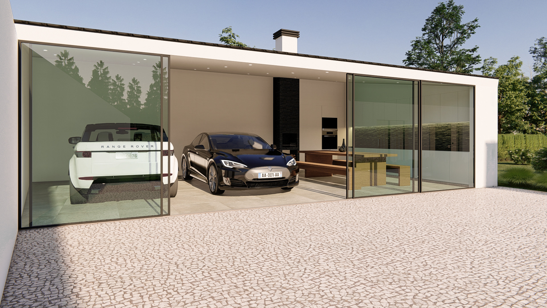 3D kitchen and living room new wave