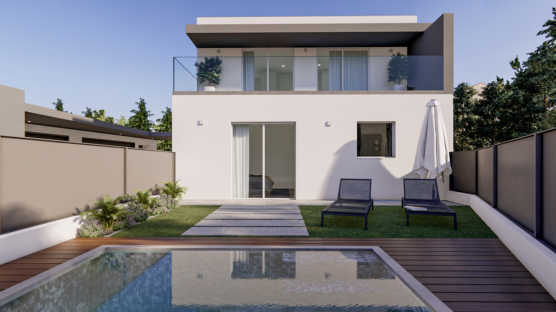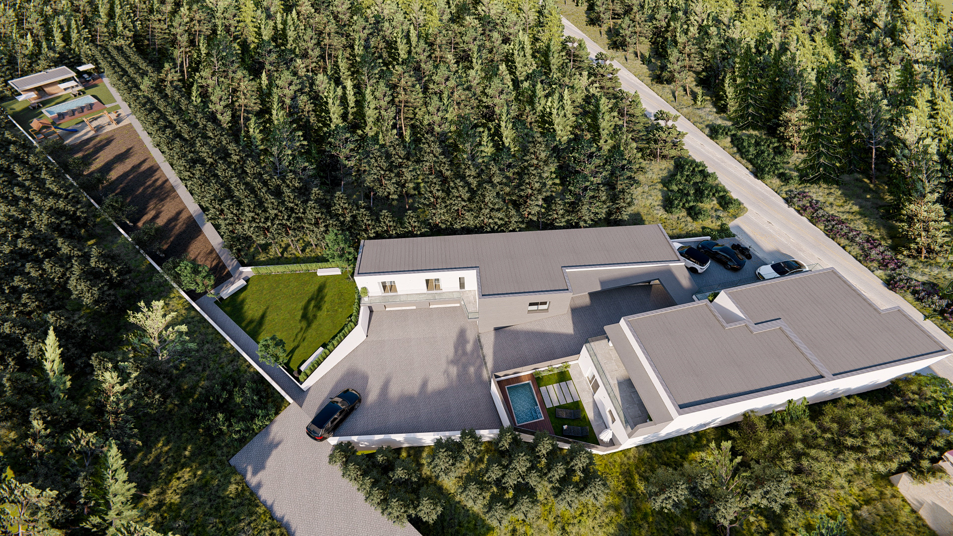 3D minimalist wooden house in the mountains