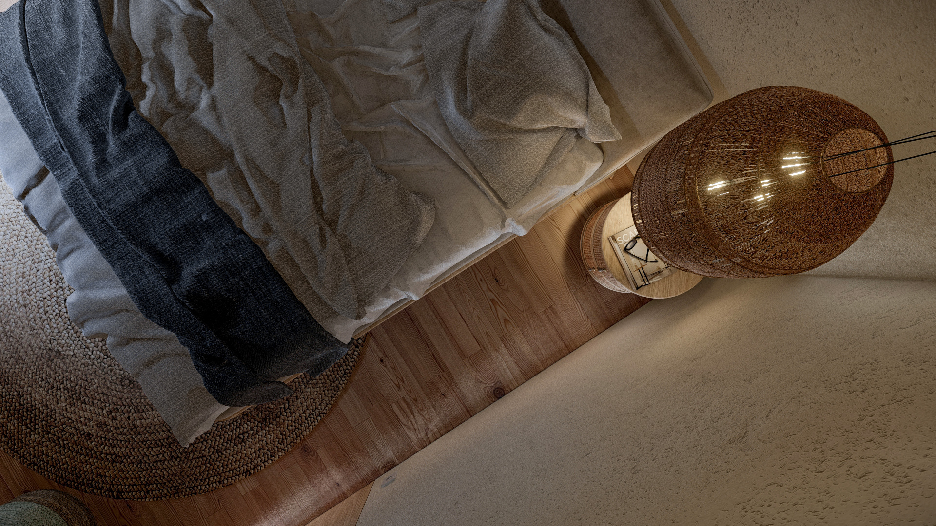 3D minimalist wooden house interior